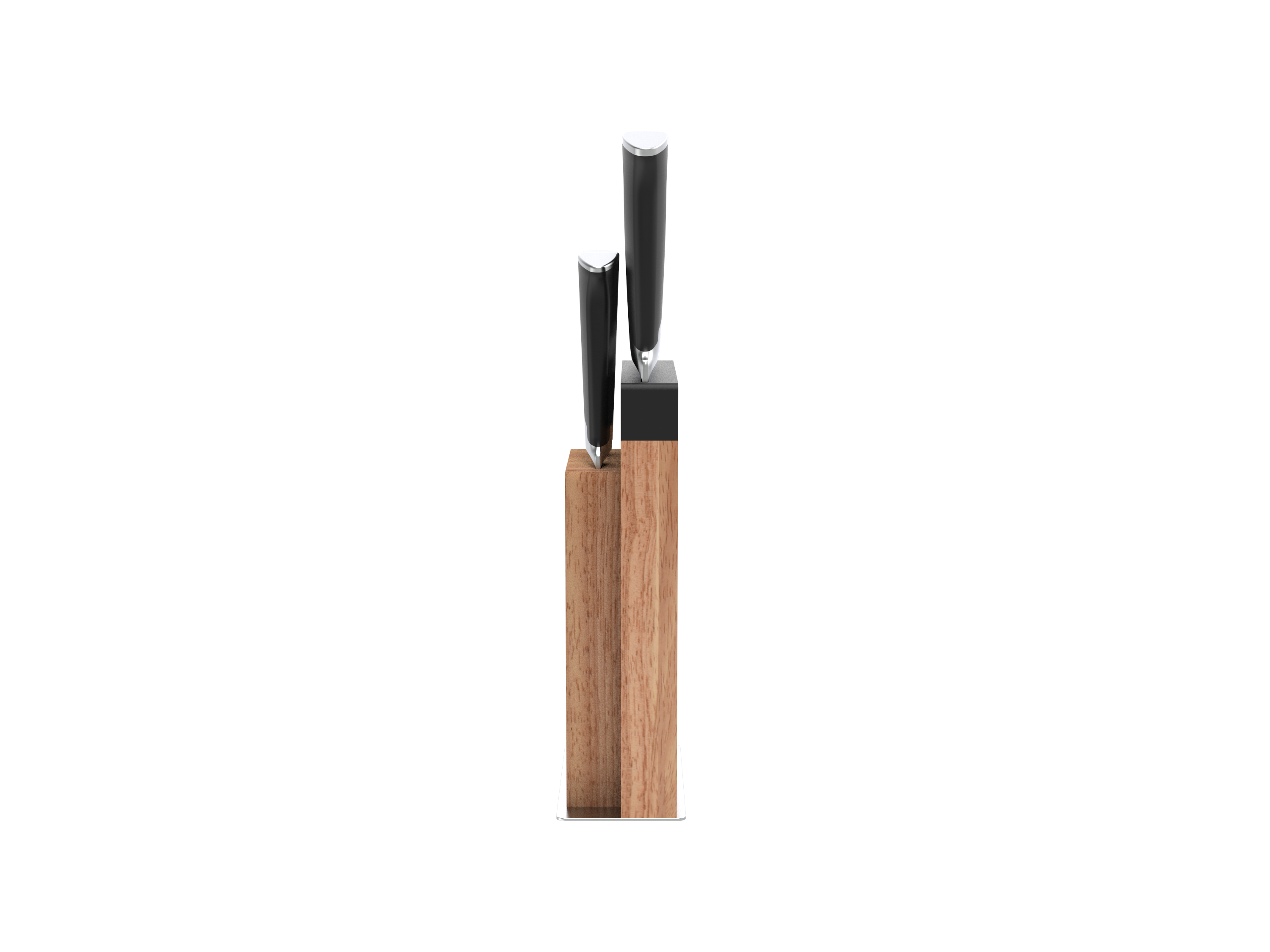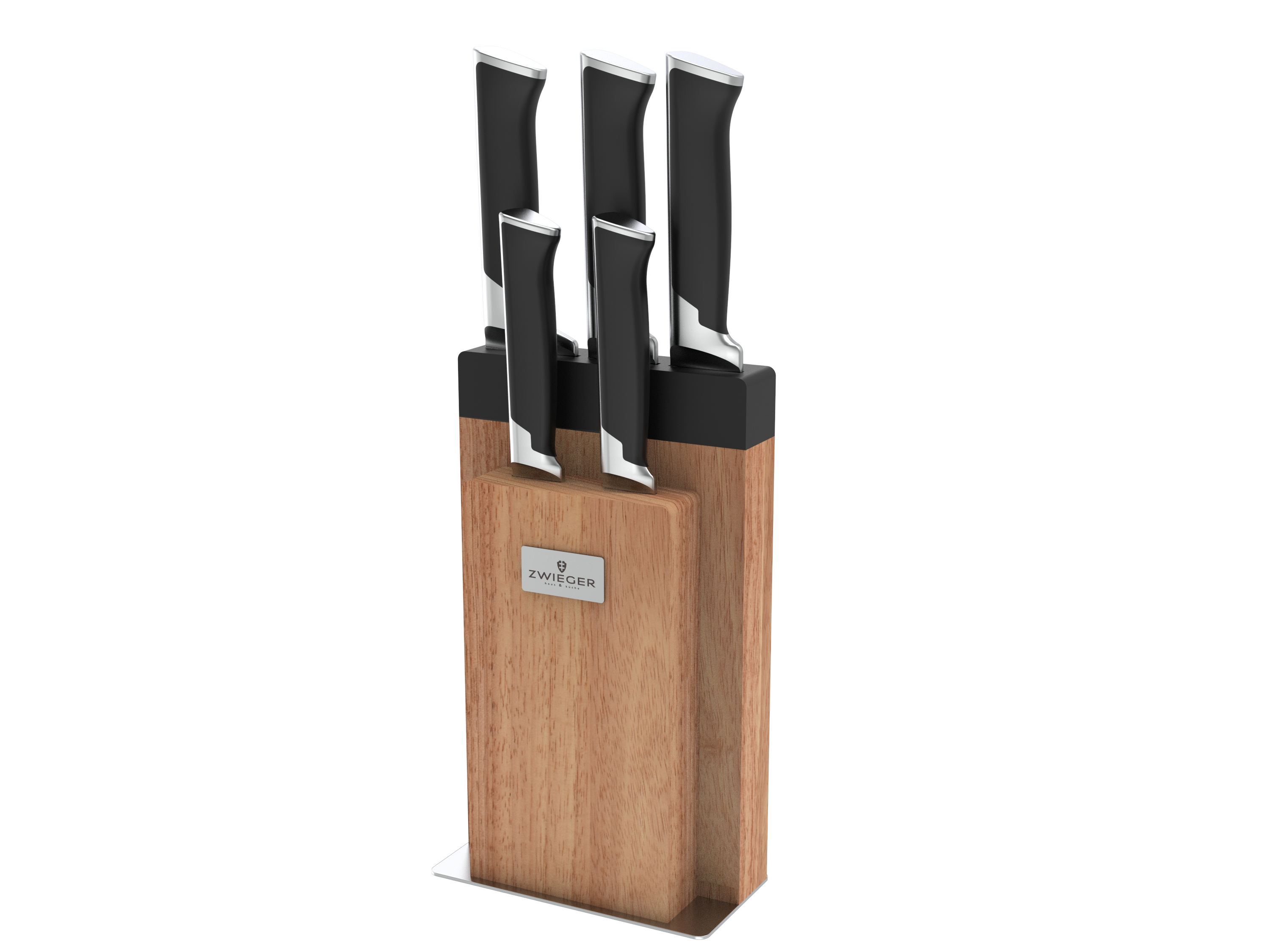 W skład zestawu wchodzi: nóż szefa, nóż do chleba, nóż do plastrowania, nóż uniwersalny oraz nóż do warzyw. DECCO to blok dla tych, którzy lubią porządek, funkcjonalność i formę, która wyróżnia się na tle innych.