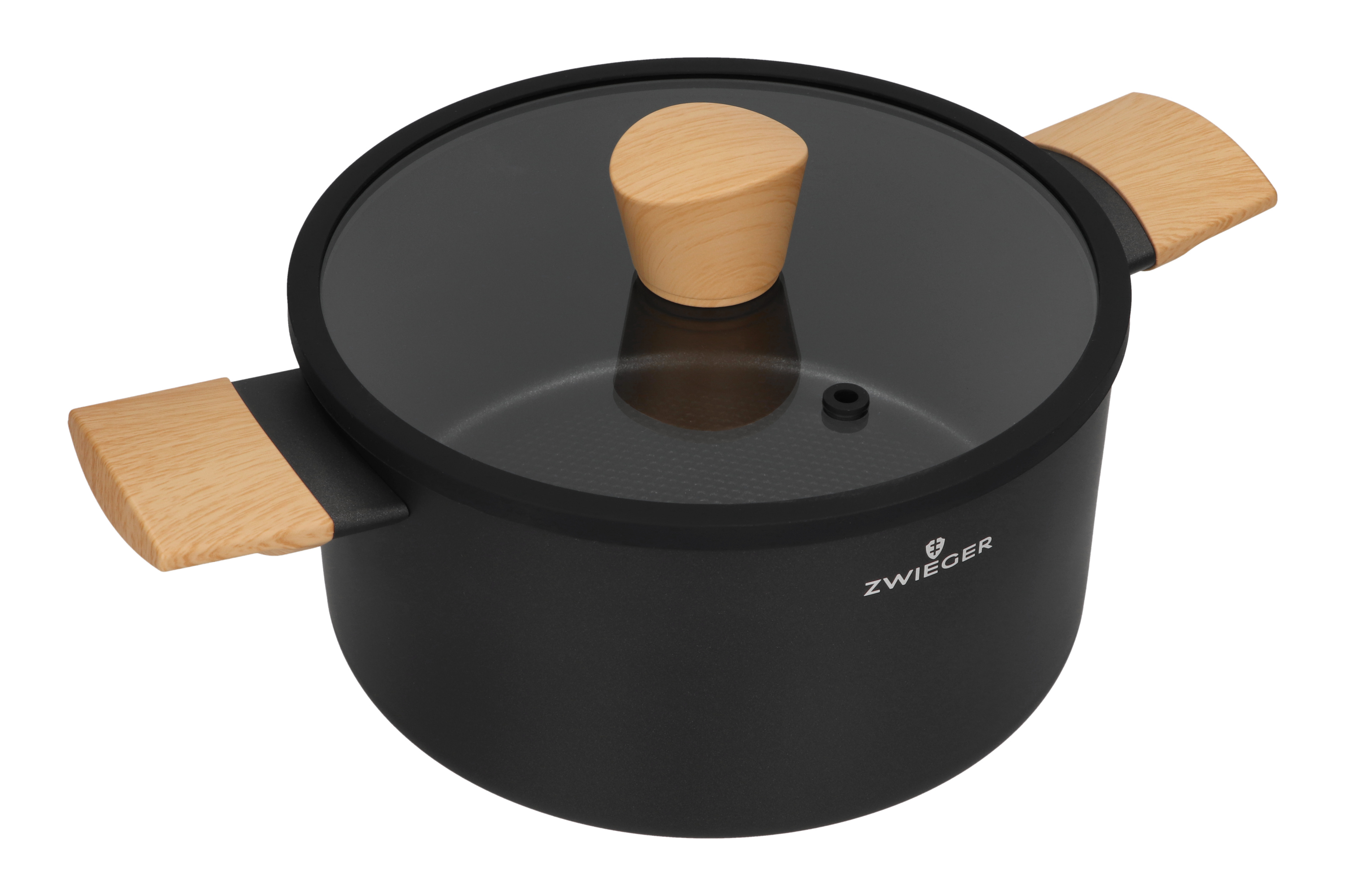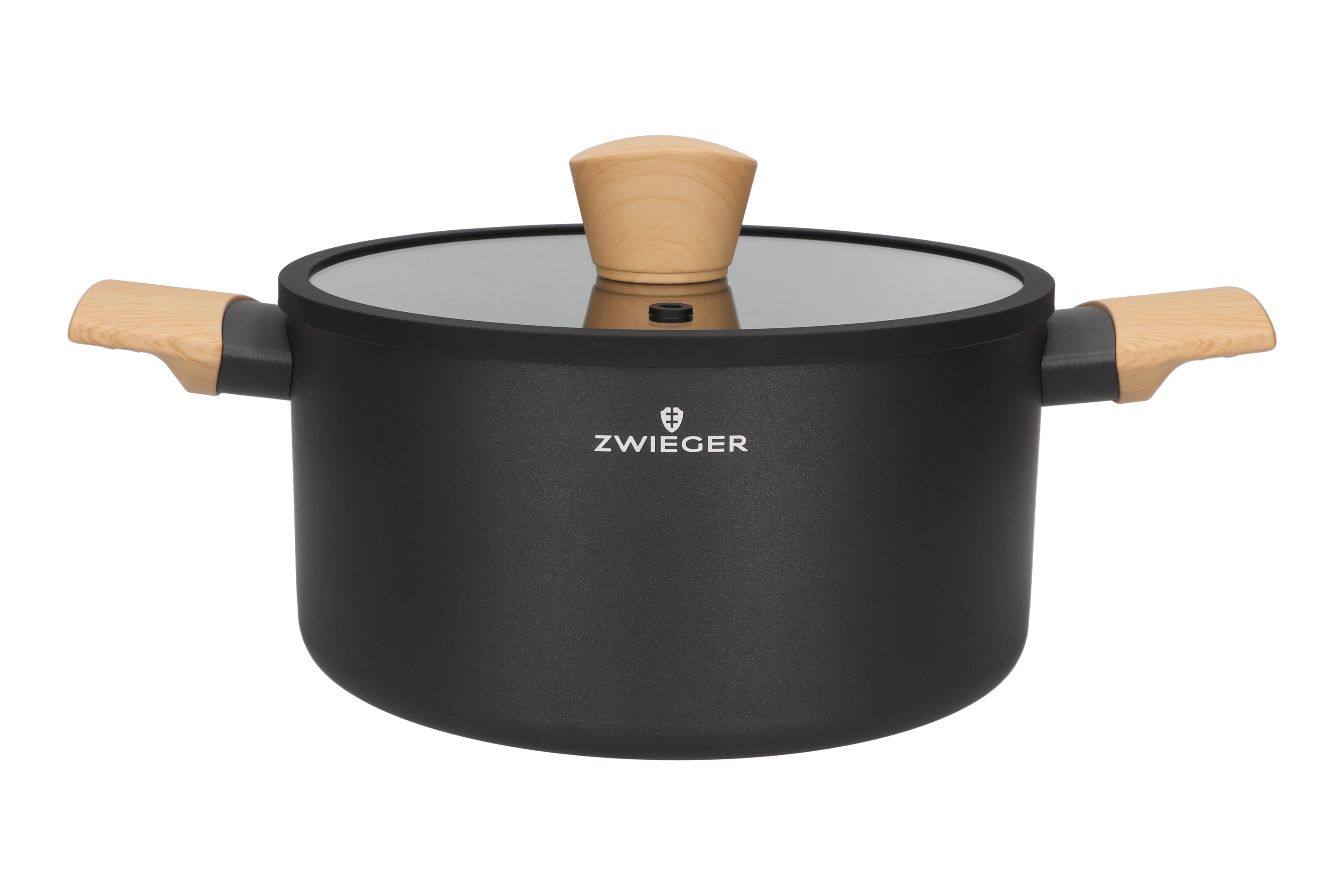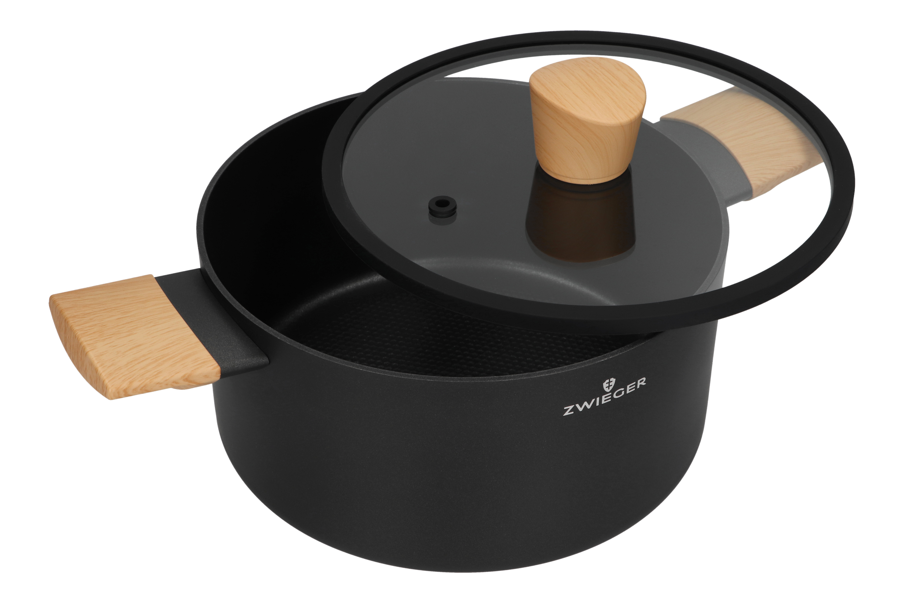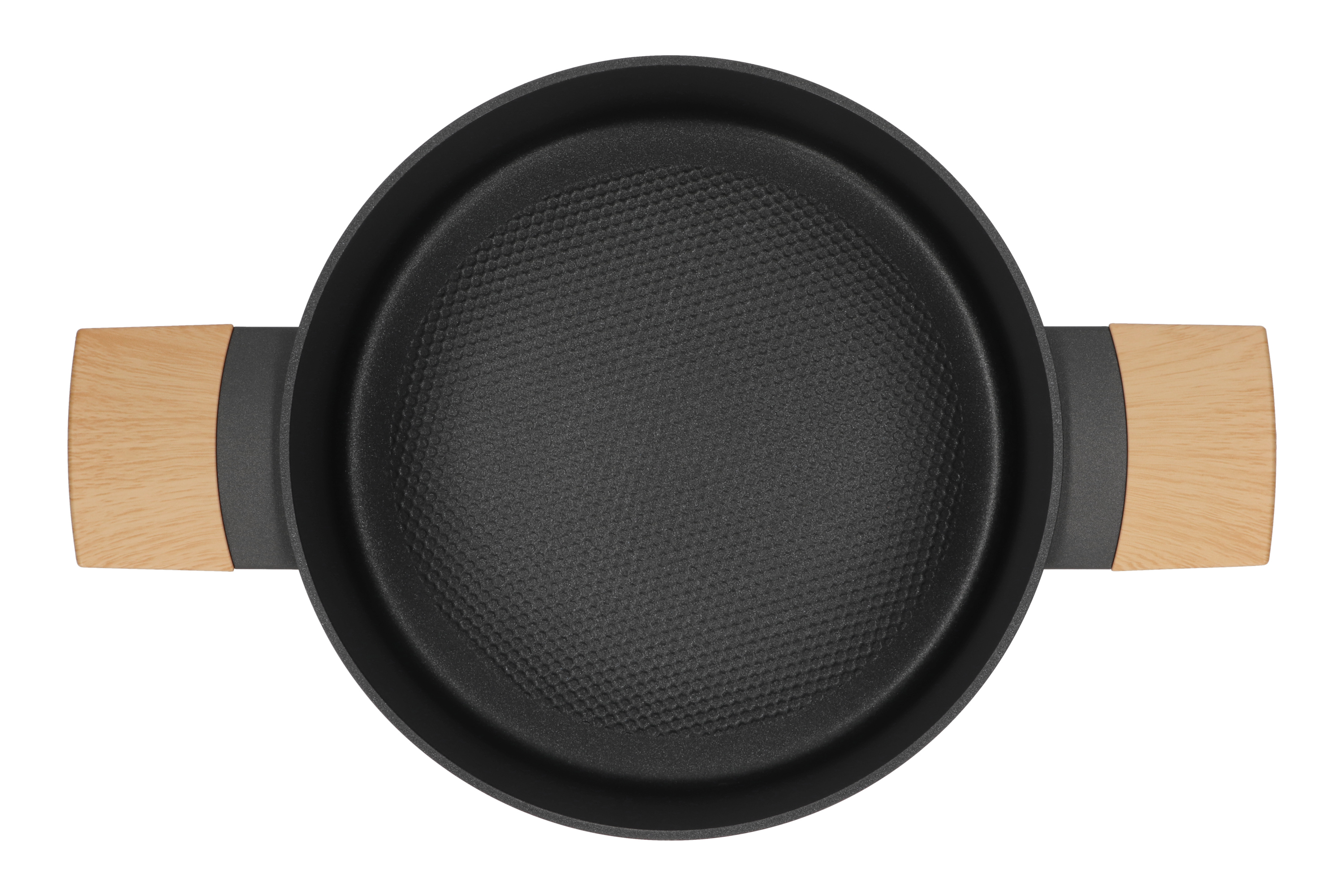 Garnki Norven to połączenie solidnych materiałów, przemyślanej konstrukcji i wygody codziennego użytkowania. Wykonane z tłoczonego aluminium, doskonale akumulują i rozprowadzają ciepło, co sprawia, że gotowanie staje się szybsze i bardziej energooszczędne. Ich wnętrze pokrywa wysokiej jakości, 3-warstwowa powłoka nieprzywierająca marki PFLUON, wolna od szkodliwych związków (PFOS, PFOA, kadmu i ołowiu), dzięki czemu przygotowywane potrawy są zdrowsze i łatwiejsze do podania. Unikalna struktura plastra miodu na dnie wewnętrza naczynia równomiernie rozprowadza olej, umożliwiając smażenie z minimalną ilością tłuszczu i gwarantując apetyczną, chrupiącą teksturę potraw. Z kolei zewnętrzną warstwę garnków chroni żaroodporny lakier silikonowy, odporny na przebarwienia, zadrapania i odpryski. Na uwagę zasługują także detale: pokrywa z hartowanego szkła z silikonowym rantem, która szczelnie zatrzymuje ciepło i skraca czas gotowania, oraz ergonomiczne uchwyty soft touch o wykończeniu imitującym drewno – przyjemne w dotyku, nienagrzewające się i zapewniające bezpieczny chwyt. Dzięki indukcyjnemu dnu garnki Norven są uniwersalne – doskonale współpracują ze wszystkimi rodzajami kuchenek, w tym indukcyjnymi. Norven to naczynia, które ułatwiają gotowanie, dbają o zdrowie i zachwycają designem.