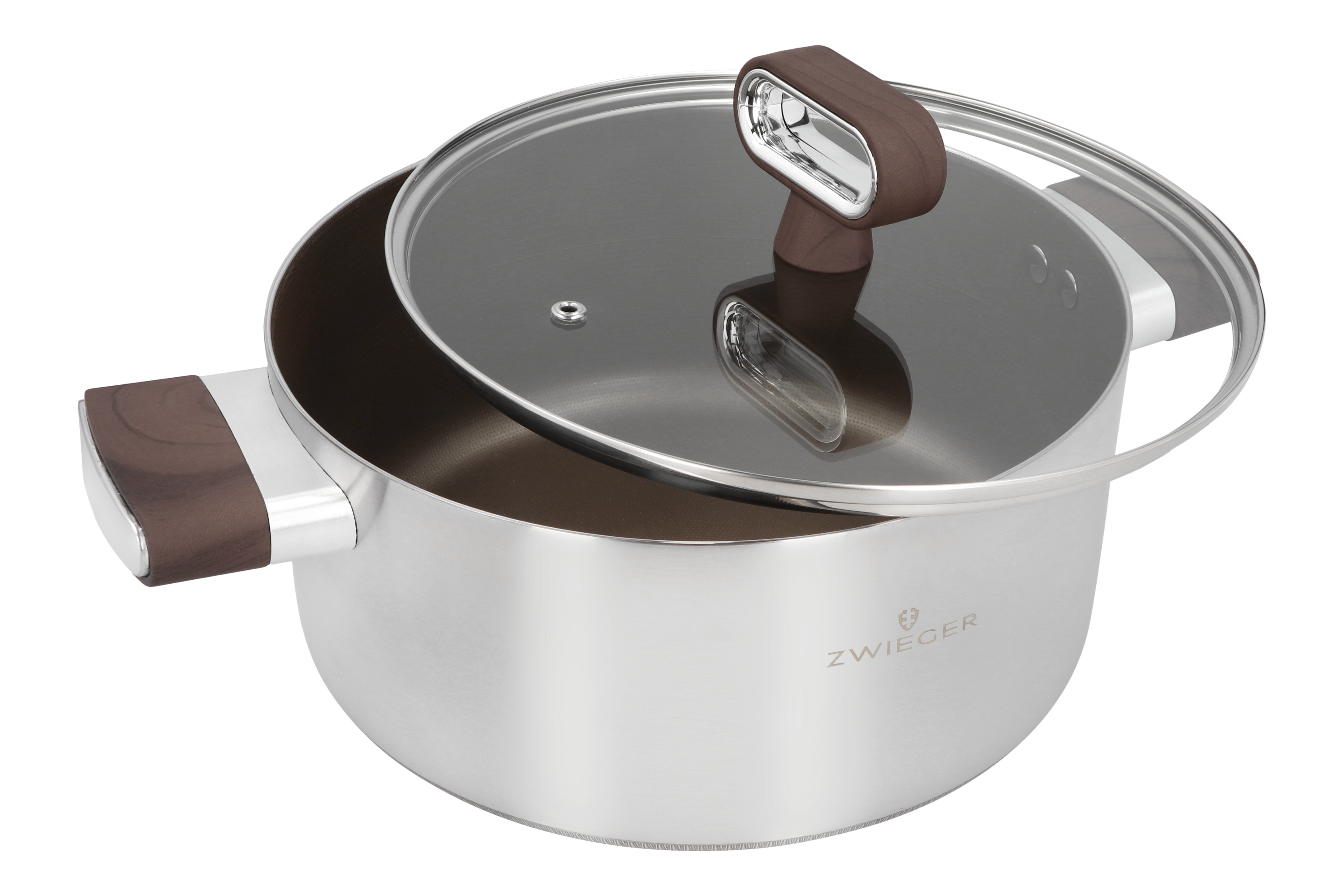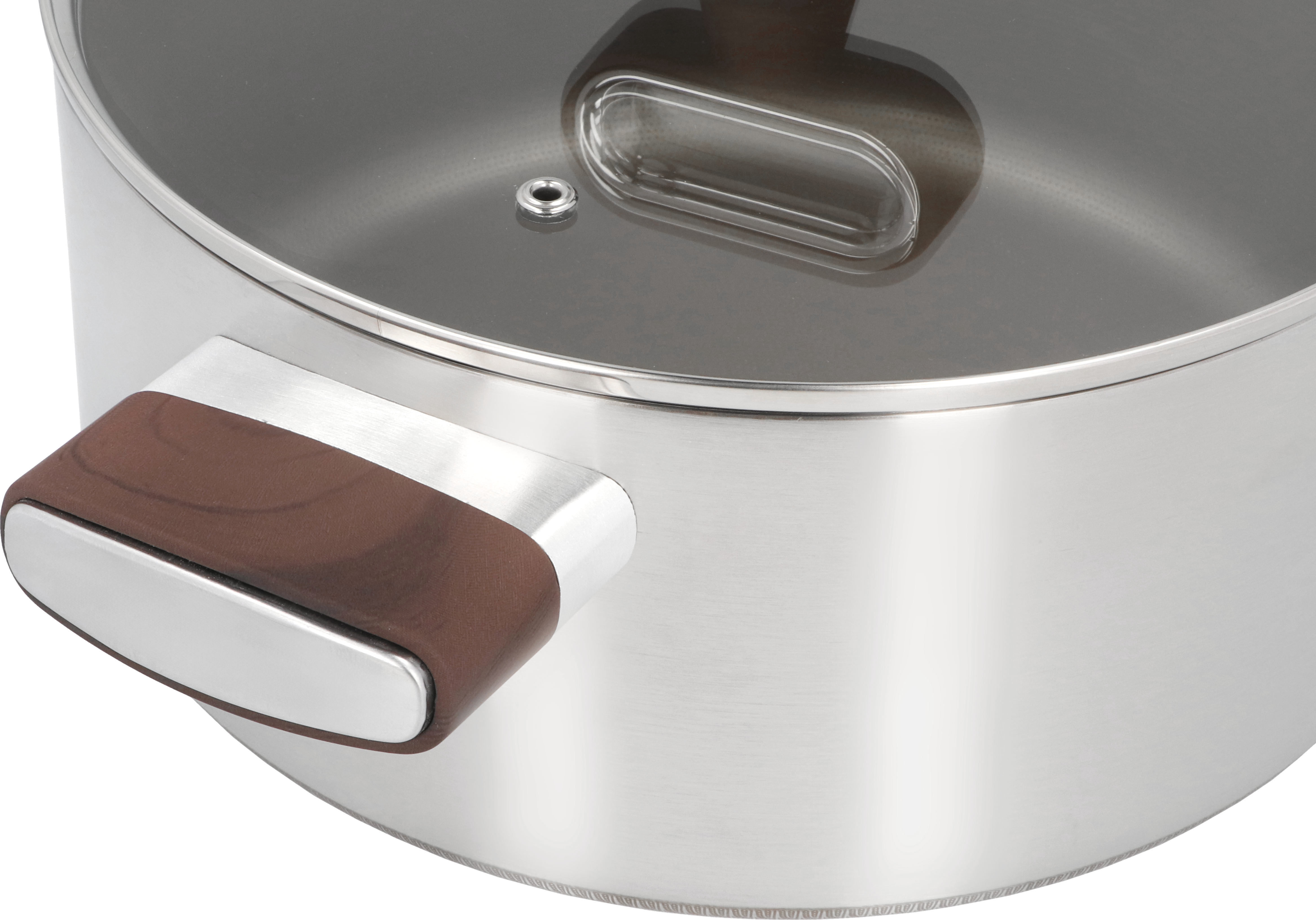 Pokrywa z bezpiecznego szkła hartowanego pozwala na bieżąco kontrolować proces gotowania bez konieczności jej zdejmowania. Wbudowany otwór odprowadzający parę zapobiega wykipieniu i pomaga utrzymać optymalną temperaturę wewnątrz naczynia. Solidny uchwyt pokrywy gwarantuje wygodne i bezpieczne użytkowanie nawet przy gorących potrawach. Przyjemne w dotyku uchwyty garnka pokryte powłoką w kolorze ciemnego drewna są ergonomiczne i odporne na nagrzewanie, co zwiększa komfort i bezpieczeństwo gotowania. Dzięki nim garnek pewnie leży w dłoniach i łatwo przenosi się z kuchenki bez ryzyka poparzenia. Dzięki strukturalnemu dnu indukcyjnemu garnek TitanCore współpracuje z każdym rodzajem kuchenki — gazową, elektryczną, ceramiczną i indukcyjną. Dno nagrzewa się szybko i równomiernie, co pozwala skrócić czas gotowania i ograniczyć zużycie energii. TitanCore to garnek stworzony dla tych, którzy oczekują czegoś więcej niż standard. Trwały, funkcjonalny i elegancki — będzie niezawodnym wsparciem w codziennym gotowaniu przez długie lata.