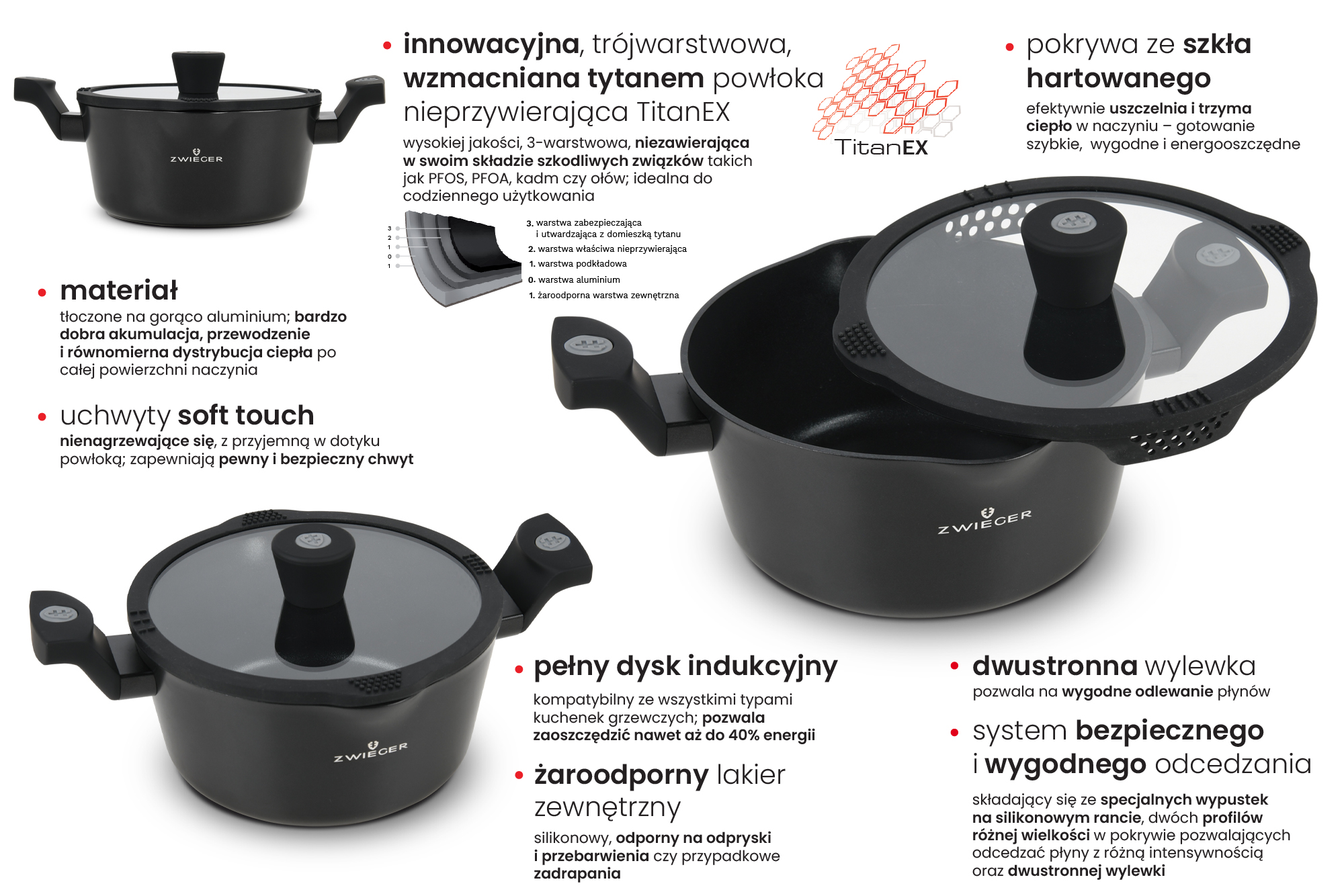 Sercem naczynia jest innowacyjna, 3-warstwowa powłoka nieprzywierająca TitanEX