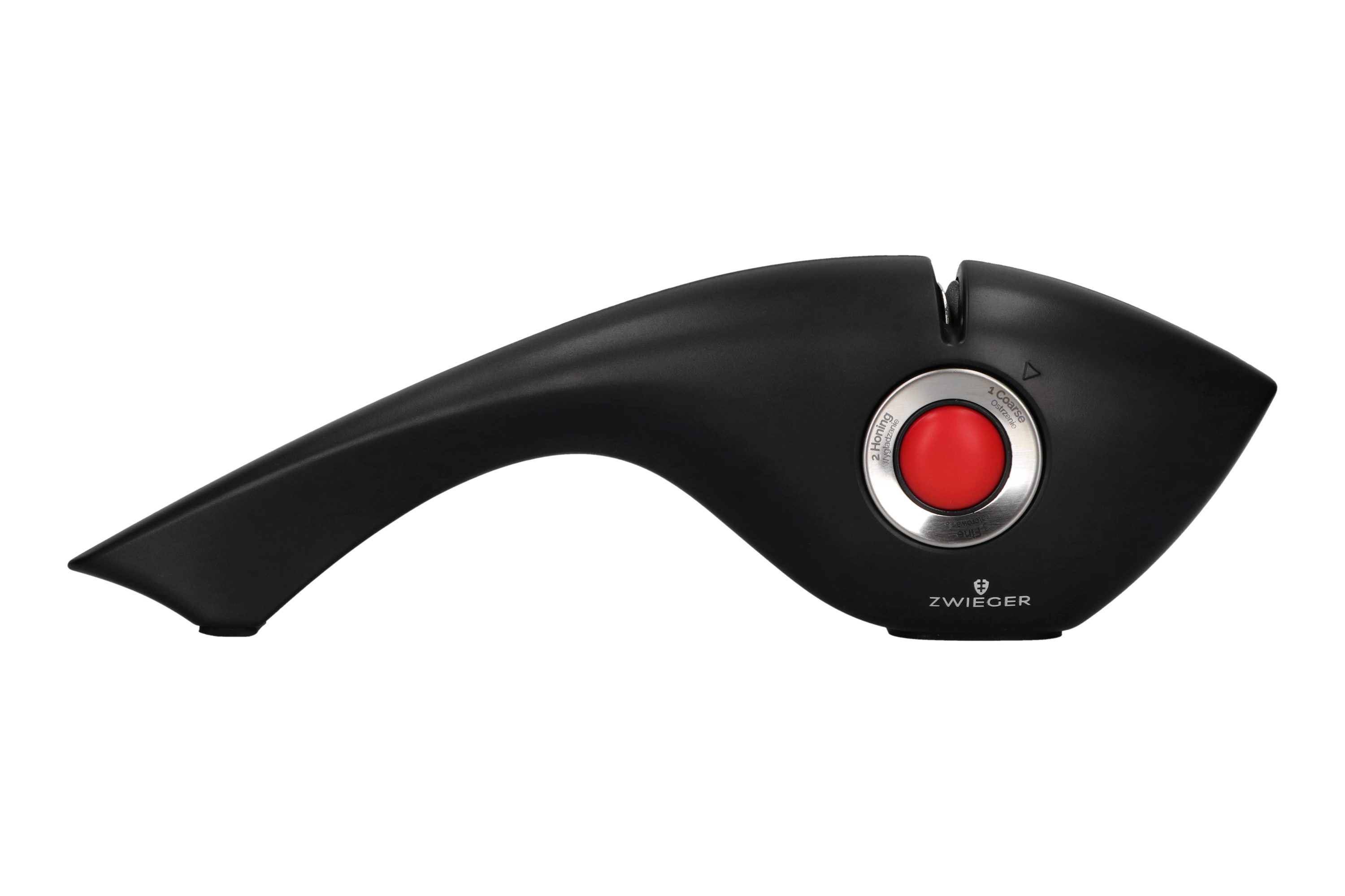 SHARK to nowoczesna 3-slotowa ostrzałka do noży, która łączy funkcjonalność z wyjątkowym designem. Dzięki zastosowaniu wysokiej jakości materiałów – stali nierdzewnej pokrytej proszkiem diamentowym stanowiącej system ostrzenia oraz miękkiej w dotyku powłoce soft touch pokrywającej ostrzałkę – SHARK doskonale spełnia swoje zadanie wyglądając przy tym nowocześnie i stylowo. Prosty mechanizm zmiany slotów za pomocą jednego przycisku sprawia, że ostrzenie staje się szybkie, intuicyjne i co najważniejsze efektywne. Urządzenie pozwala skutecznie naostrzyć każdy typ noża – zarówno całkowicie tępy, jak i wymagający jedynie odświeżenia. Pierwszy slot przeznaczony jest do wstępnego ostrzenia bardzo zniszczonych ostrzy, drugi – do właściwego nadania ostrości, a trzeci – do wygładzenia i polerowania krawędzi. Wystarczy zaledwie kilka ruchów, by przywrócić nożom dawną skuteczność. Ostrzałka SHARK to idealne i niezbędne narzędzie dla każdego, kto ceni sobie ostre narzędzia i wygodę pracy w swojej kuchni.