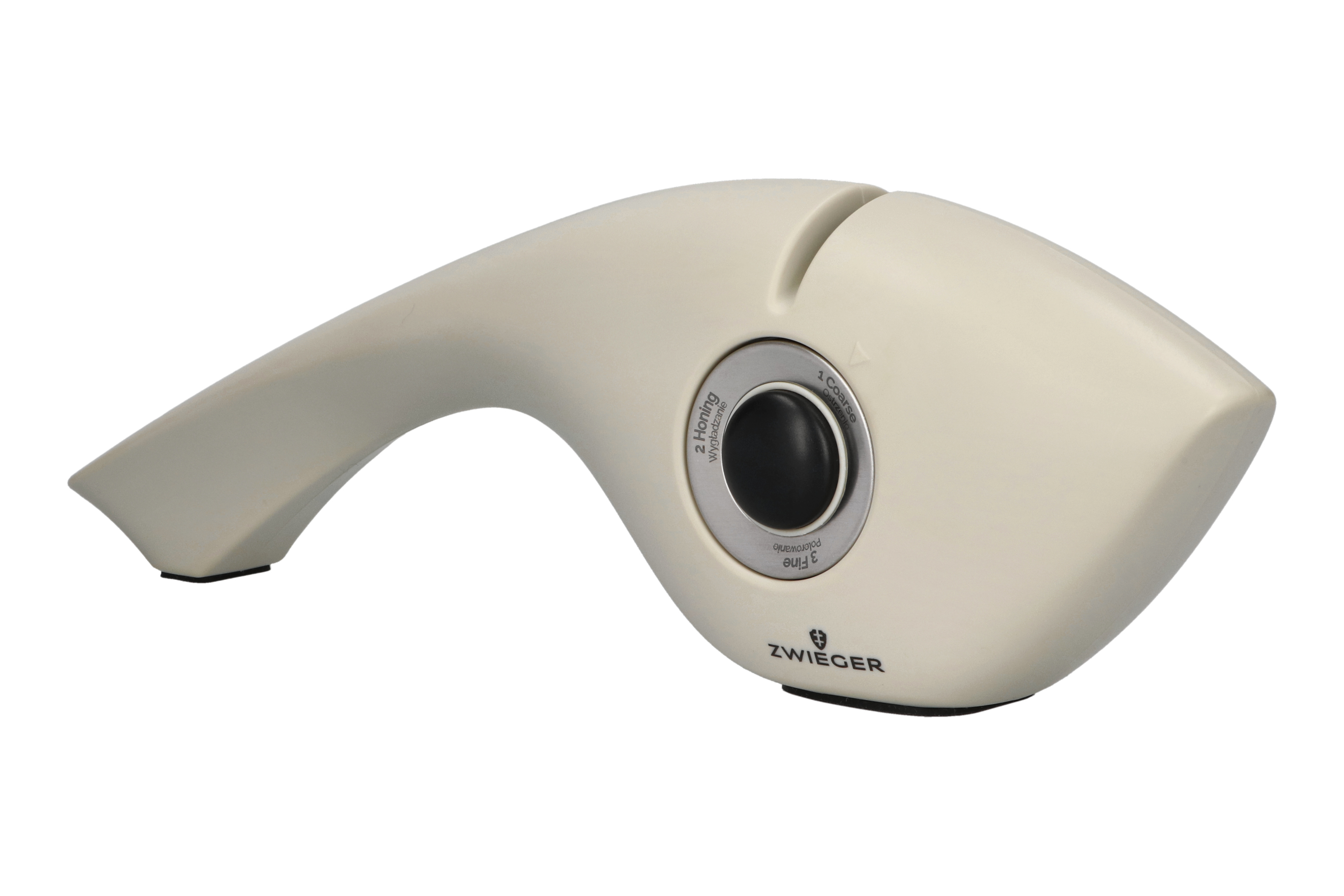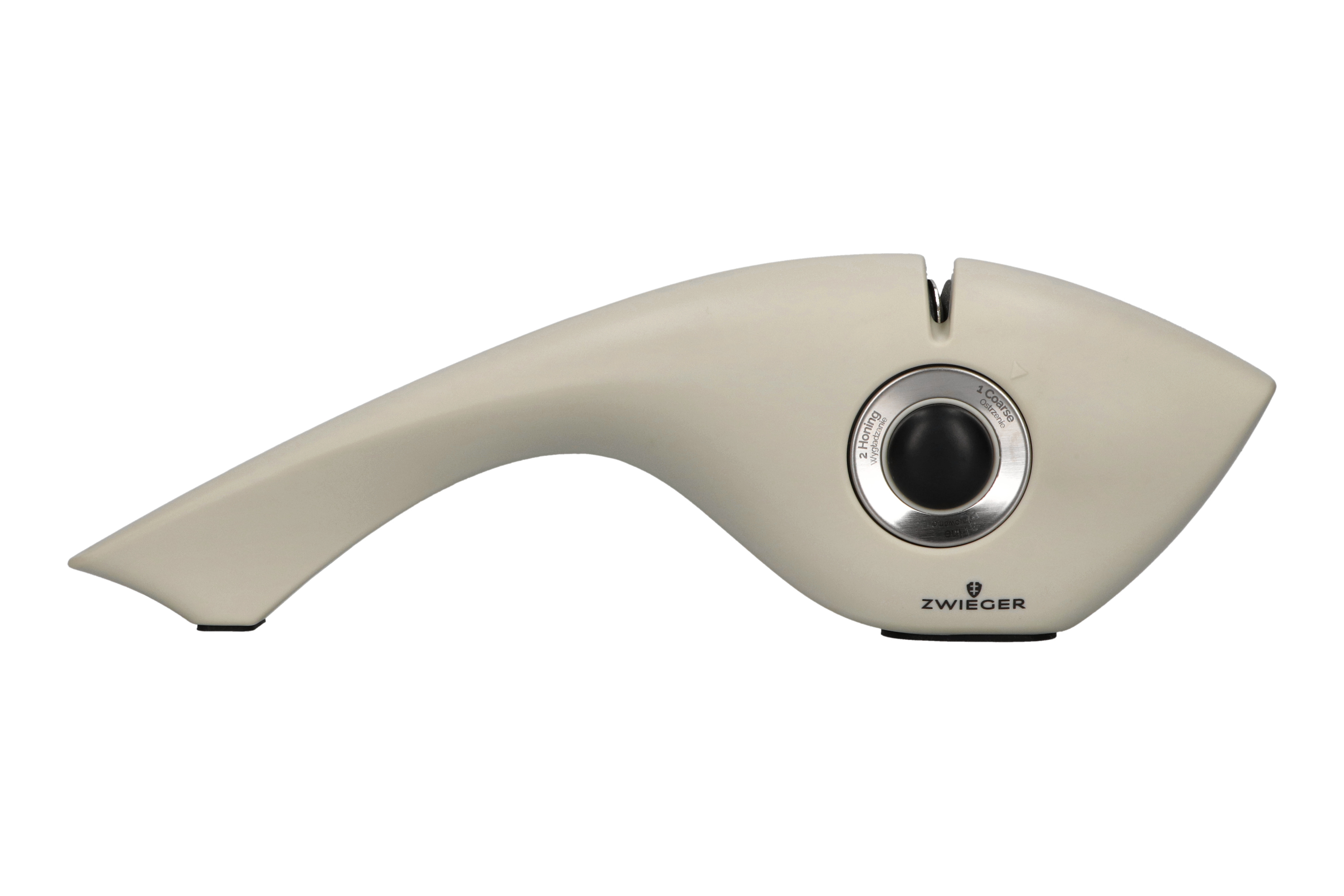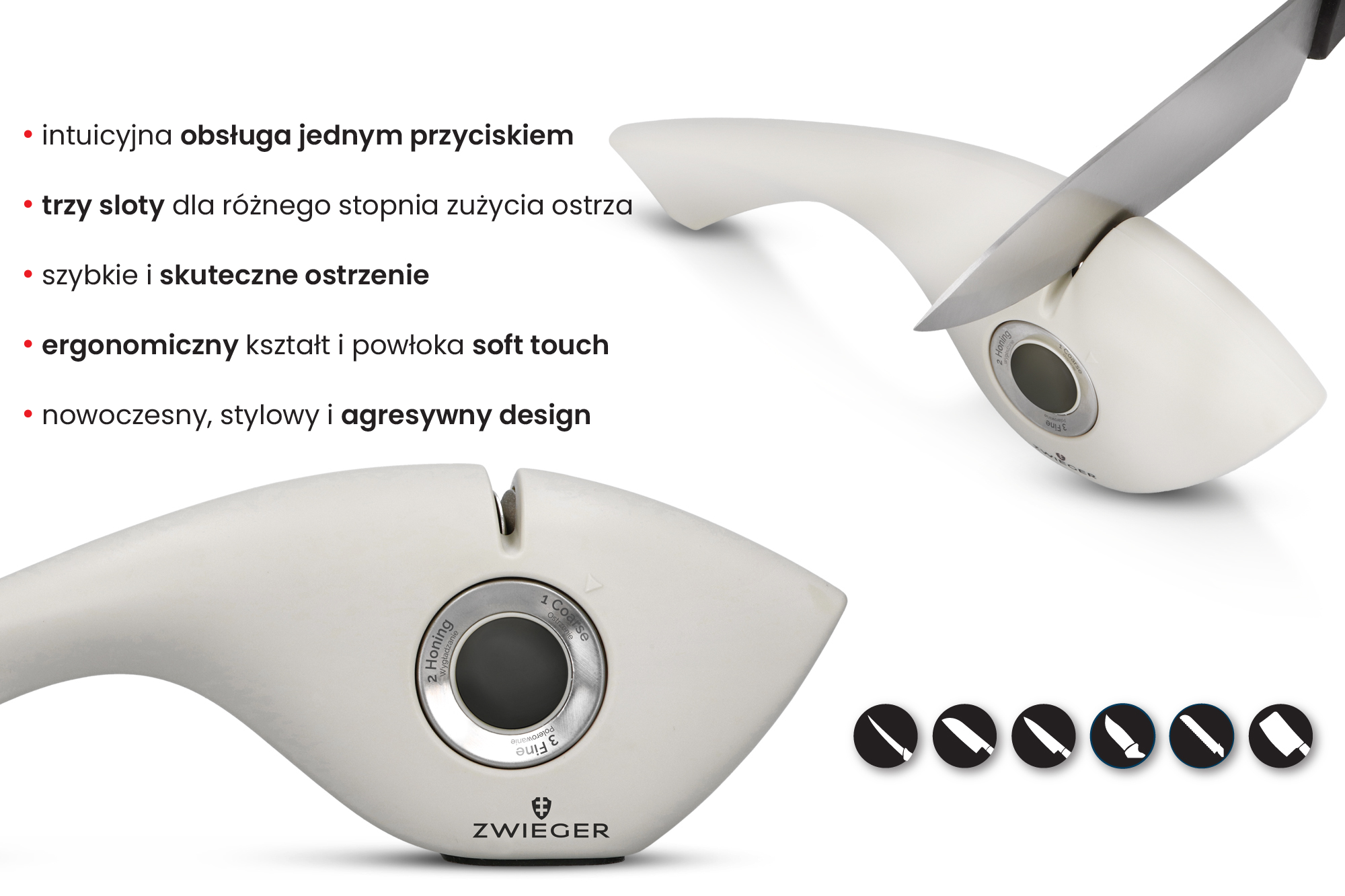 SHARK to nowoczesna 3-slotowa ostrzałka do noży, która łączy funkcjonalność z wyjątkowym designem. Dzięki zastosowaniu wysokiej jakości materiałów – stali nierdzewnej pokrytej proszkiem diamentowym stanowiącej system ostrzenia oraz miękkiej w dotyku powłoce soft touch pokrywającej ostrzałkę – SHARK doskonale spełnia swoje zadanie wyglądając przy tym nowocześnie i stylowo. Prosty mechanizm zmiany slotów za pomocą jednego przycisku sprawia, że ostrzenie staje się szybkie, intuicyjne i co najważniejsze efektywne. Urządzenie pozwala skutecznie naostrzyć każdy typ noża – zarówno całkowicie tępy, jak i wymagający jedynie odświeżenia. Pierwszy slot przeznaczony jest do wstępnego ostrzenia bardzo zniszczonych ostrzy, drugi – do właściwego nadania ostrości, a trzeci – do wygładzenia i polerowania krawędzi. Wystarczy zaledwie kilka ruchów, by przywrócić nożom dawną skuteczność. Ostrzałka SHARK to idealne i niezbędne narzędzie dla każdego, kto ceni sobie ostre narzędzia i wygodę pracy w swojej kuchni.