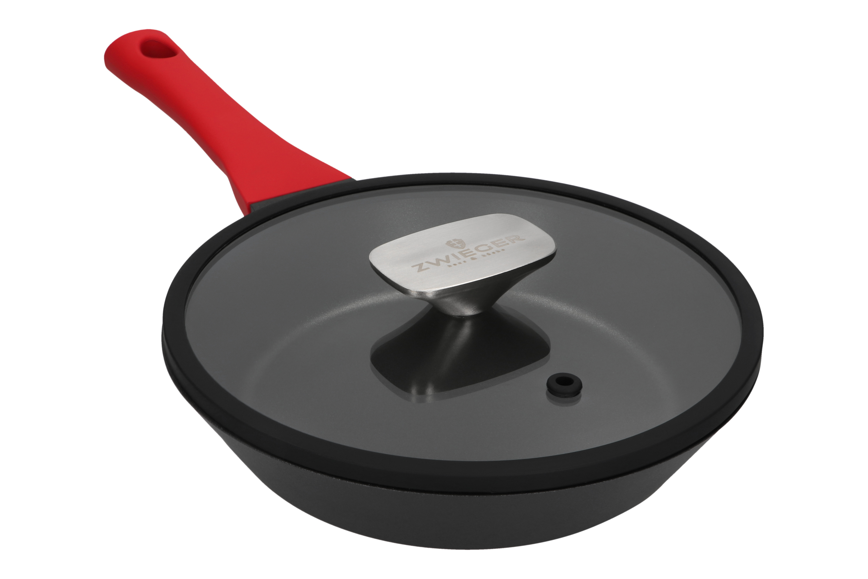 Pokrywka Zwieger to praktyczny ale i elegancki dodatek, który realnie podnosi komfort gotowania. Wykonana z płaskiego, hartowanego szkła, gwarantuje pełną widoczność potraw, a jednocześnie jest bezpieczna, trwała i odporna na wysokie temperatury. Jej silikonowy rant zapewnia szczelne przyleganie do naczynia, dzięki czemu ciepło i para zostają tam, gdzie powinny – wewnątrz garnka lub patelni. To przekłada się na szybsze gotowanie, lepsze aromaty i mniejsze zużycie energii. Zastosowany metalowy uchwyt jest wygodny, stabilny i – co najważniejsze – nie nagrzewa się, co zapewnia pełen komfort użytkowania. Uniwersalna konstrukcja pokrywki sprawia, że pasuje do większości naczyń o tej samej średnicy, a możliwość używania jej także w piekarniku otwiera dodatkowe kulinarne możliwości, zwłaszcza przy duszeniu czy zapiekaniu. Całość uzupełnia nowoczesny design, który doskonale współgra z patelniami Zwieger i świetnie wpisuje się w estetykę współczesnej kuchni. To funkcjonalny dodatek, który robi różnicę na co dzień.