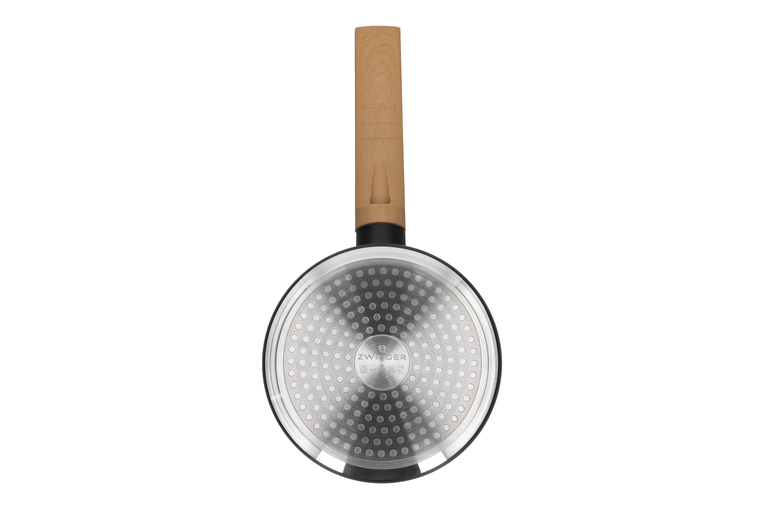 Garnki Norven to połączenie solidnych materiałów, przemyślanej konstrukcji i wygody codziennego użytkowania. Wykonane z tłoczonego aluminium, doskonale akumulują i rozprowadzają ciepło, co sprawia, że gotowanie staje się szybsze i bardziej energooszczędne. Ich wnętrze pokrywa wysokiej jakości, 3-warstwowa powłoka nieprzywierająca marki PFLUON, wolna od szkodliwych związków (PFOS, PFOA, kadmu i ołowiu), dzięki czemu przygotowywane potrawy są zdrowsze i łatwiejsze do podania. Unikalna struktura plastra miodu na dnie wewnętrza naczynia równomiernie rozprowadza olej, umożliwiając smażenie z minimalną ilością tłuszczu i gwarantując apetyczną, chrupiącą teksturę potraw. Z kolei zewnętrzną warstwę garnków chroni żaroodporny lakier silikonowy, odporny na przebarwienia, zadrapania i odpryski. Na uwagę zasługują także detale: pokrywa z hartowanego szkła z silikonowym rantem, która szczelnie zatrzymuje ciepło i skraca czas gotowania, oraz ergonomiczne uchwyty soft touch o wykończeniu imitującym drewno – przyjemne w dotyku, nienagrzewające się i zapewniające bezpieczny chwyt. Dzięki indukcyjnemu dnu garnki Norven są uniwersalne – doskonale współpracują ze wszystkimi rodzajami kuchenek, w tym indukcyjnymi. Norven to naczynia, które ułatwiają gotowanie, dbają o zdrowie i zachwycają designem.