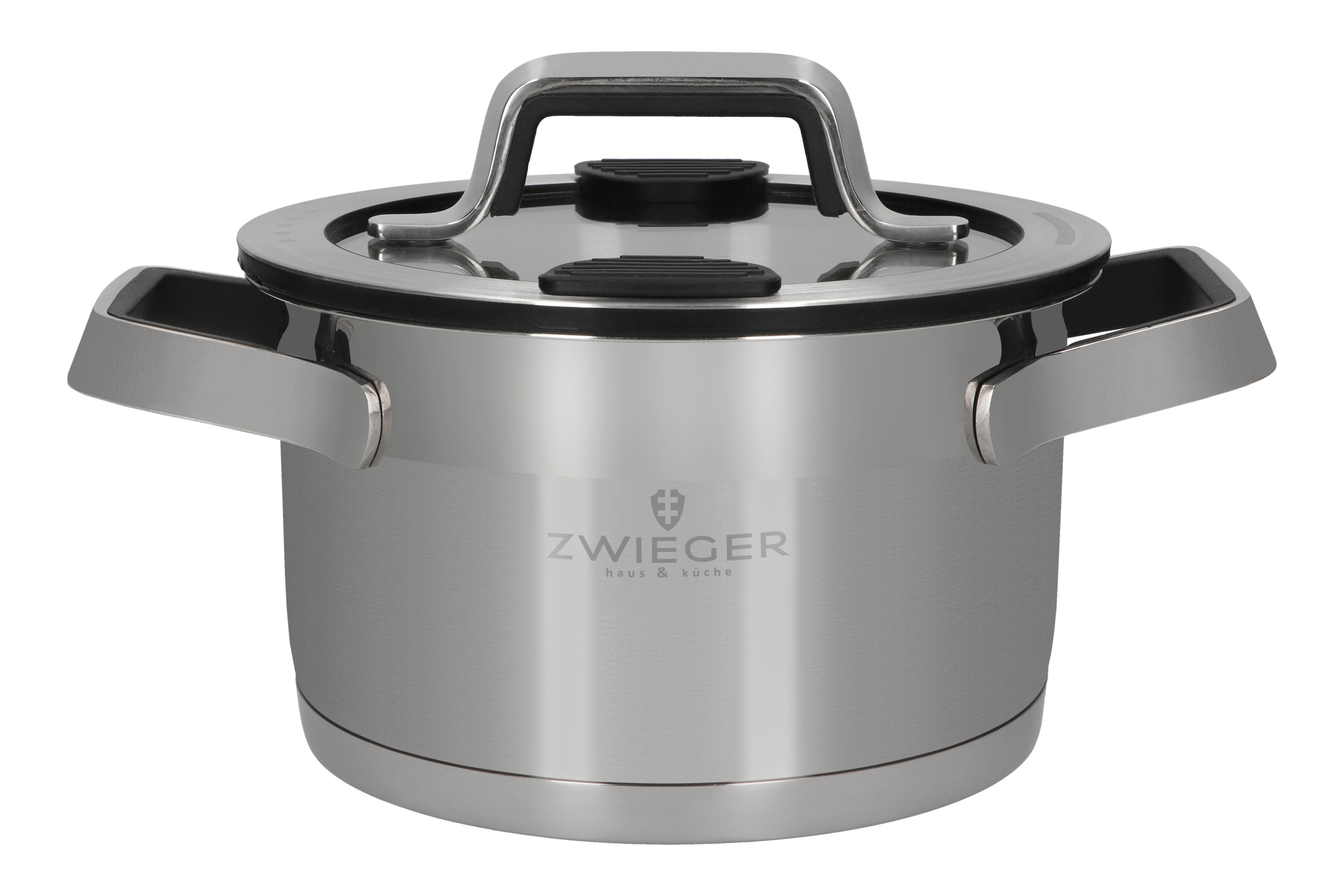 Pokrywa została dodatkowo wyposażona w specjalne nakładki pod palce umieszczone w jej górnej części, które poprawiają chwyt, ułatwiają kontrolę podczas odlewania i znacząco zwiększają bezpieczeństwo tej czynności. Stabilne, spawane uchwyty gwarantują pewny chwyt i wysoki komfort użytkowania. Podczas gotowania i prawidłowego użytkowania (np. ogień kuchenki gazowej nie wychodzi poza dno garnka) uchwyty nie nagrzewają się znacząco i osiągają temperatury utrudniającej bezpieczne przenoszenie garnka. Dodatkowym atutem są silikonowe wstawki w czarnym kolorze, które nie tylko podnoszą wygodę użytkowania, ale również podkreślają nowoczesny charakter naczyń. Wewnątrz każdego naczynia znajduje się czytelna podziałka litrażowa, ułatwiająca precyzyjne odmierzanie płynów i zachowanie odpowiednich proporcji składników. Grube ścianki skutecznie magazynują ciepło, poprawiają efektywność gotowania oraz zwiększają odporność garnków na odkształcenia i intensywne użytkowanie.