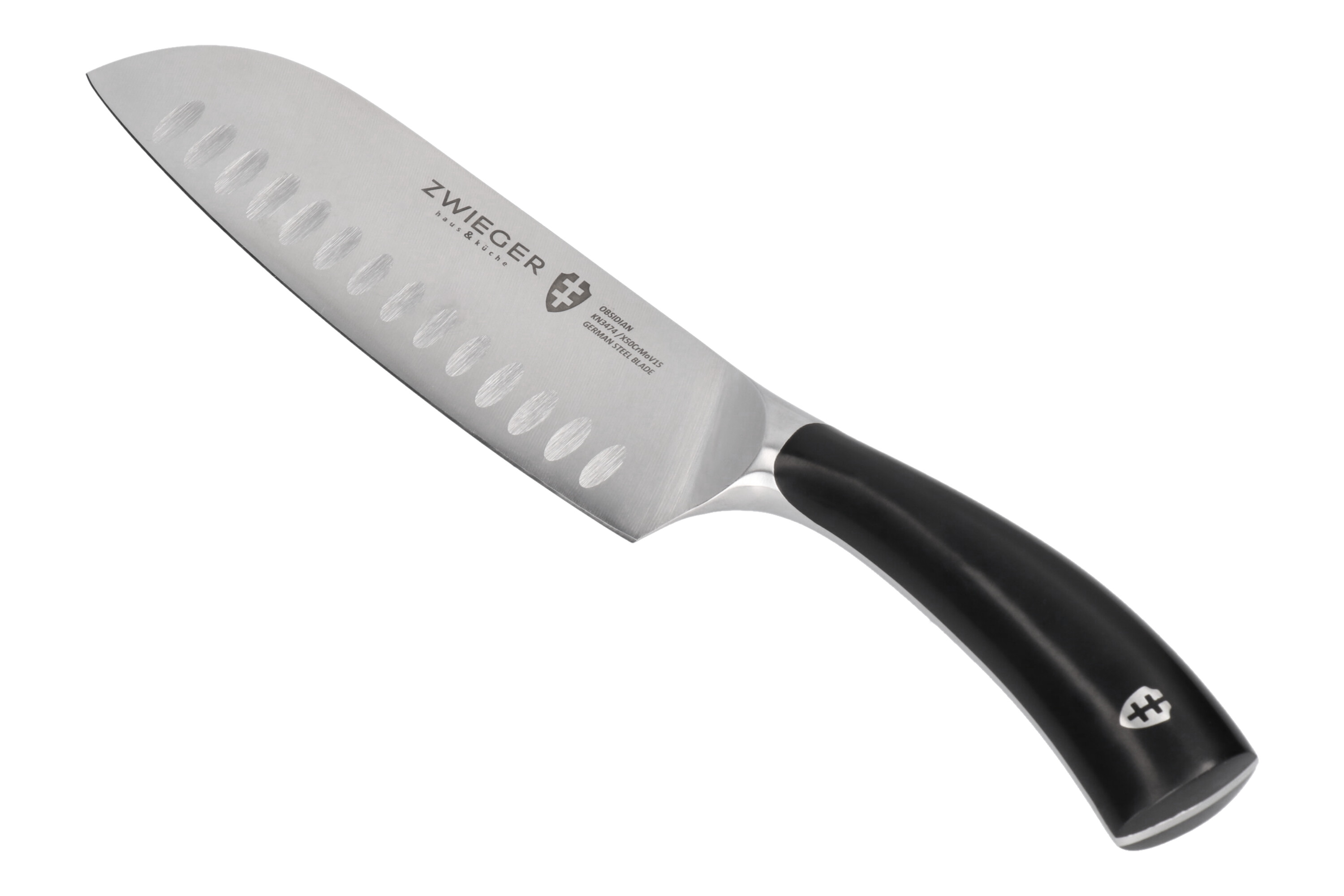 Wtopiony w rączkę elegancki emblemat marki ZWIEGER dopełnia i potwierdza wysoką jakość noży OBSIDIAN, dzięki czemu stanowią one prawdziwą gratkę dla koneserów.