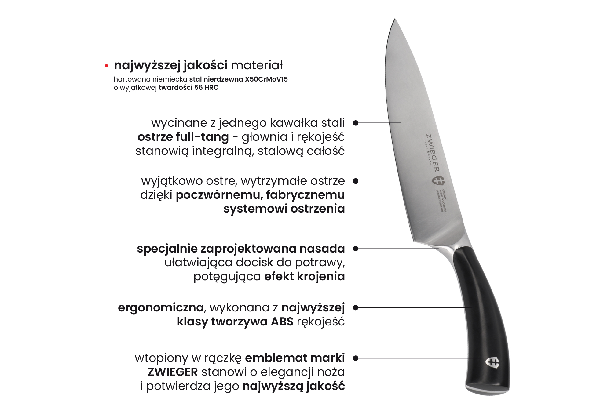 - DETAL – wtopiony w rączkę emblemat marki Zwieger