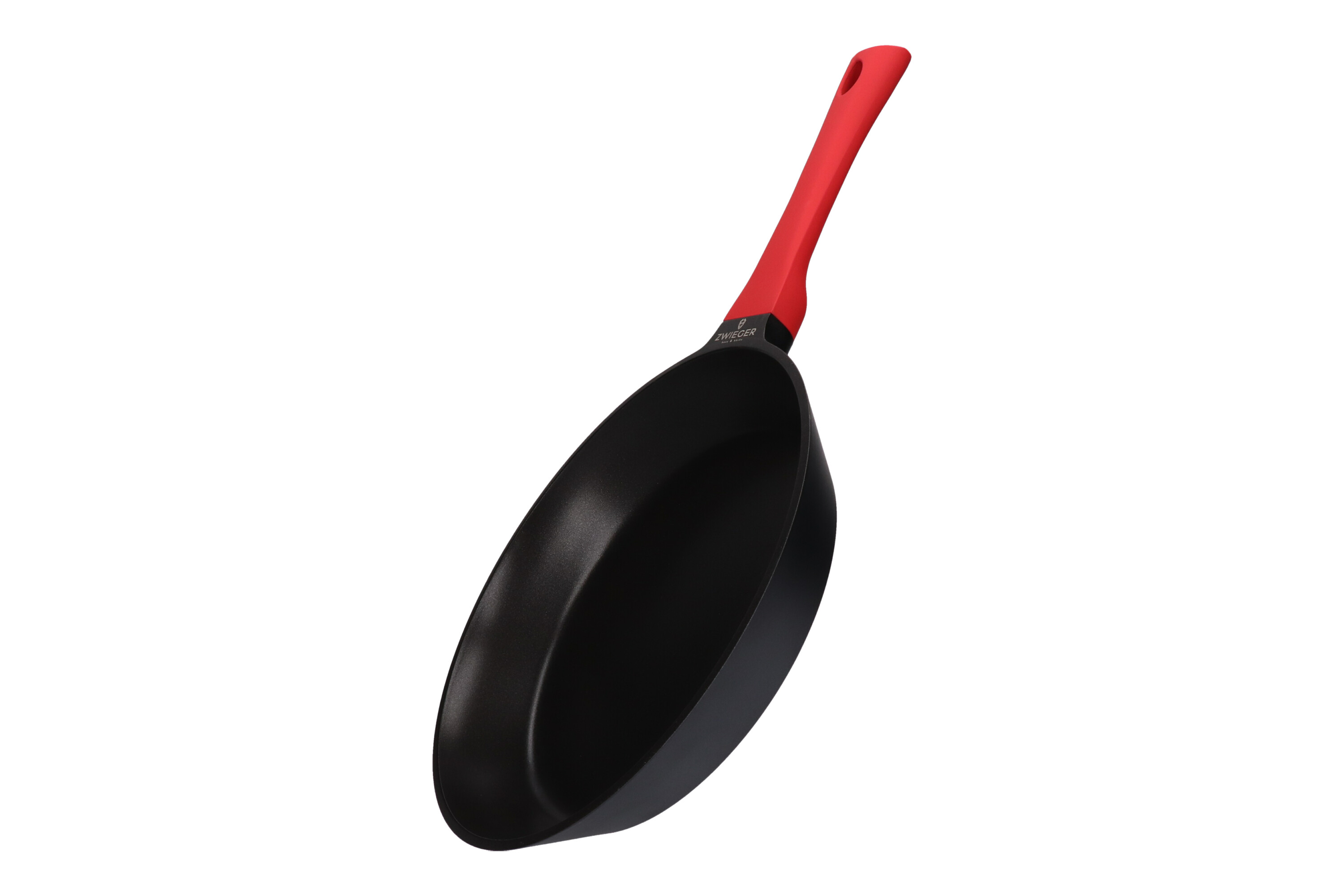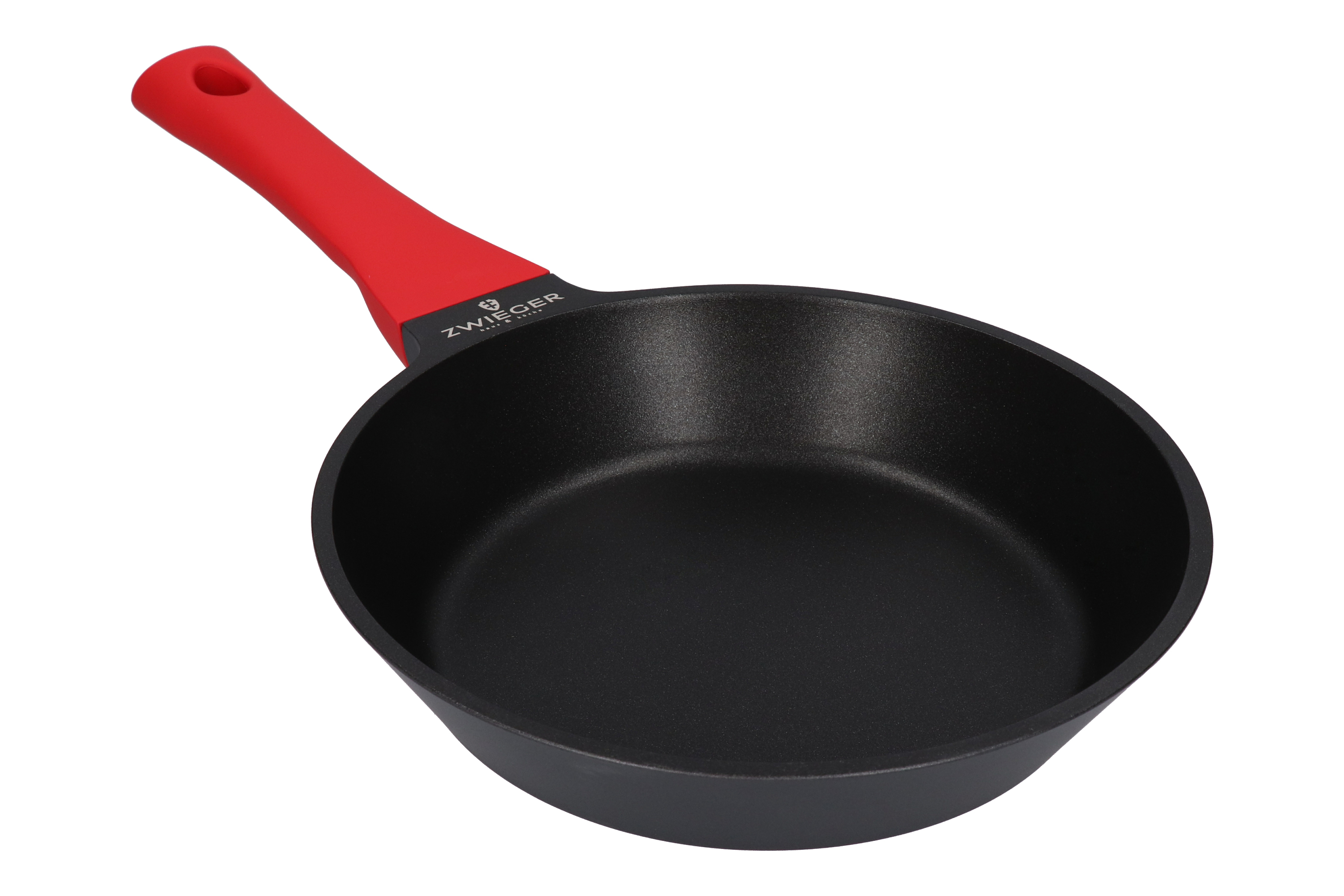 Patelnia Zwieger z odlewanego aluminium. Wewnętrzną część naczynia pokrywa innowacyjna, nieprzywierająca powłoka Greblon®. Ze względu na swoje wyjątkowe właściwości, zwiększające odporność na zarysowania, powłoka ta stosowana jest w naczyniach wysokiej klasy. Dodatkowo, żaroodporny lakier silikonowy, który pokrywa patelnię na zewnątrz, sprawia, że zachowuje ona swój estetyczny wygląd przez długi czas. Ponadto doskonale przewodzi i akumuluje ciepło. Patelnie można używać na wszystkich rodzajach kuchenek grzewczych, w tym na płytach indukcyjnych. Co więcej, użyty pełny dysk indukcyjny, dzięki pełnemu przewodzeniu magnetycznemu, zapewnia lepsze wykorzystanie energii sięgające aż do 40 %. Zastosowana nieprzywierająca powłoka pozwala smażyć przy minimalnym lub całkowitym braku zużycia tłuszczu, co niewątpliwie przekłada się na zdrowy tryb życia. Rączka została wykonana z materiału PP, który nie przewodzi ciepła, a także posiada specjalną powłokę soft touch, zapewniającą wygodny i pewny chwyt.