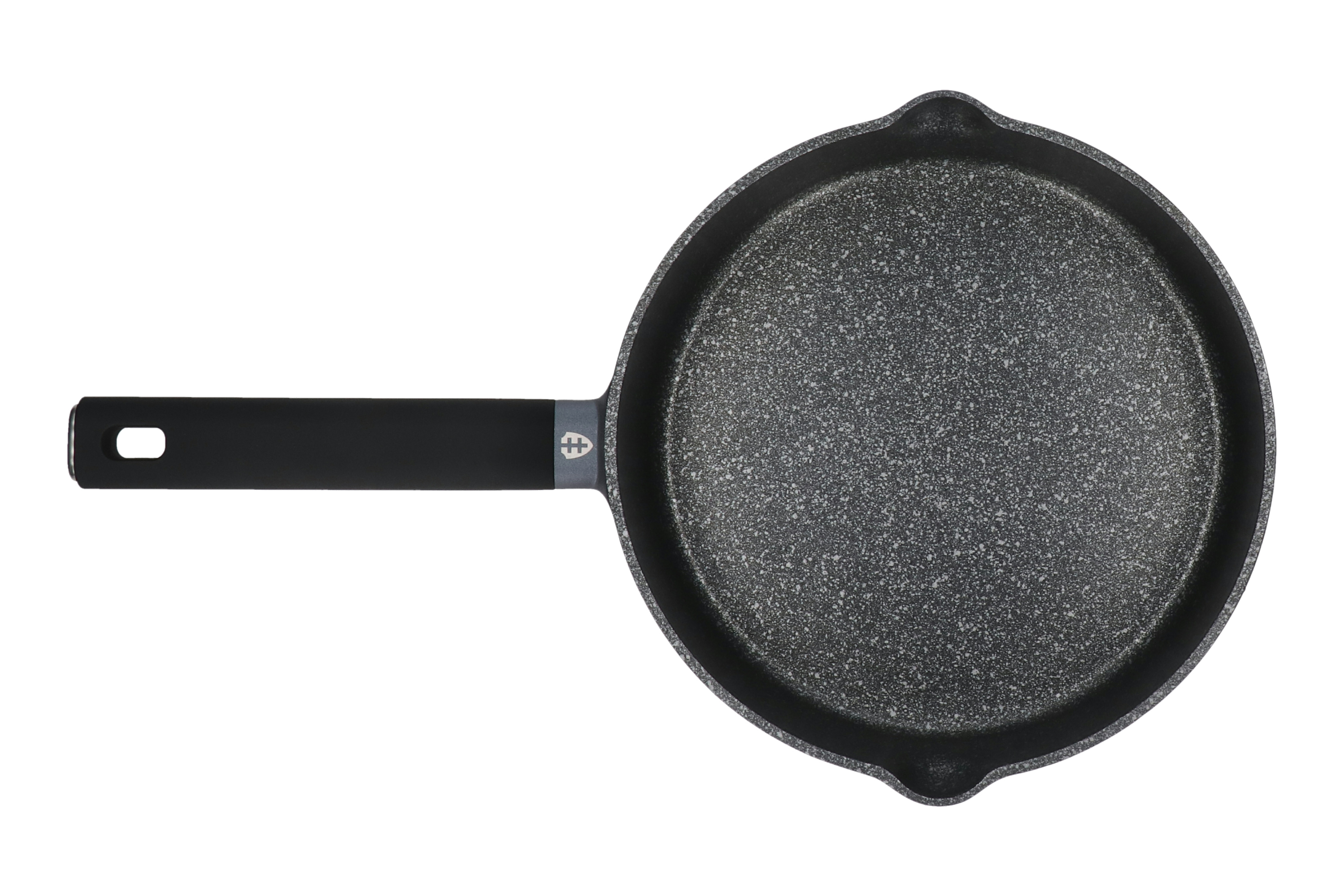 Zestaw patelni z odlewanego aluminium, z innowacyjną, nieprzywierającą powłoką Greblon®. Posiada pełny dysk indukcyjny oraz dwustronną wylewkę do łatwego i precyzyjnego i wygodnego odlewania tłuszczu lub sosu. Maksymalna temperatura pracy 240°C.